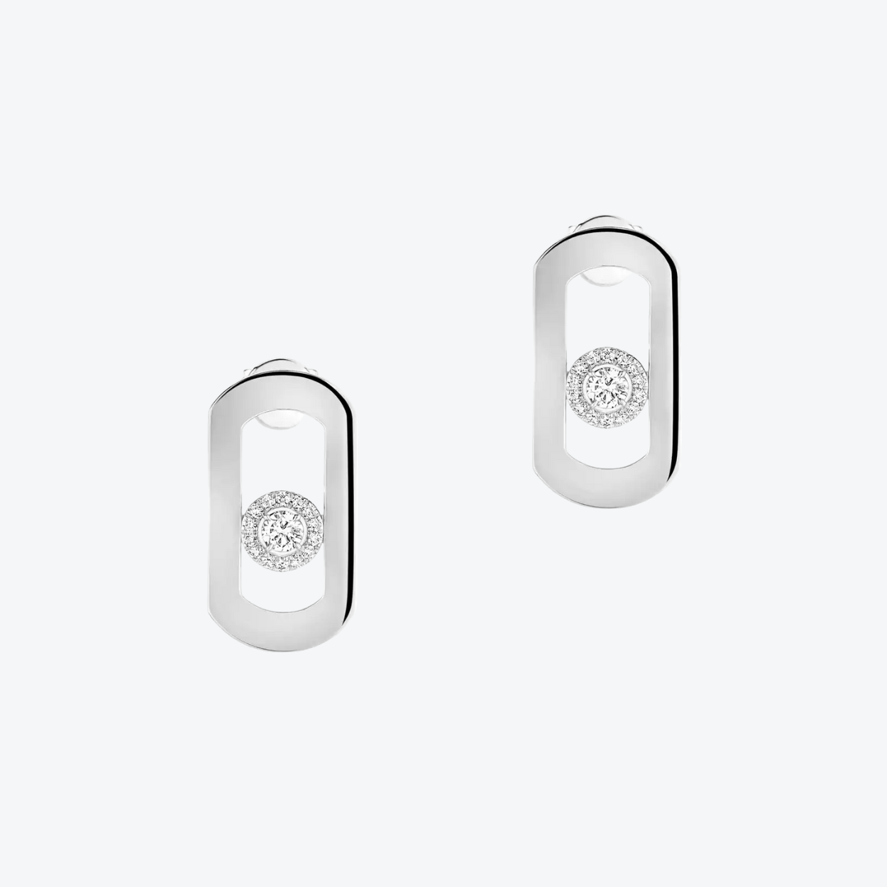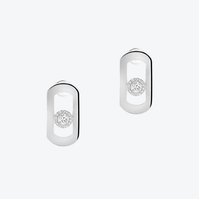 The Messika So Move earrings in 18-karat white gold combine modern elegance and graphic strength: each piece reinterprets the iconic Move motif with a free-flowing diamond (G/VS), framed by a brilliant pavé band that accentuates its sparkle. With clean lines and a refined allure, these earrings are both daring and whispering—a timeless and distinctive accent, perfect for making any look both subtle and striking.