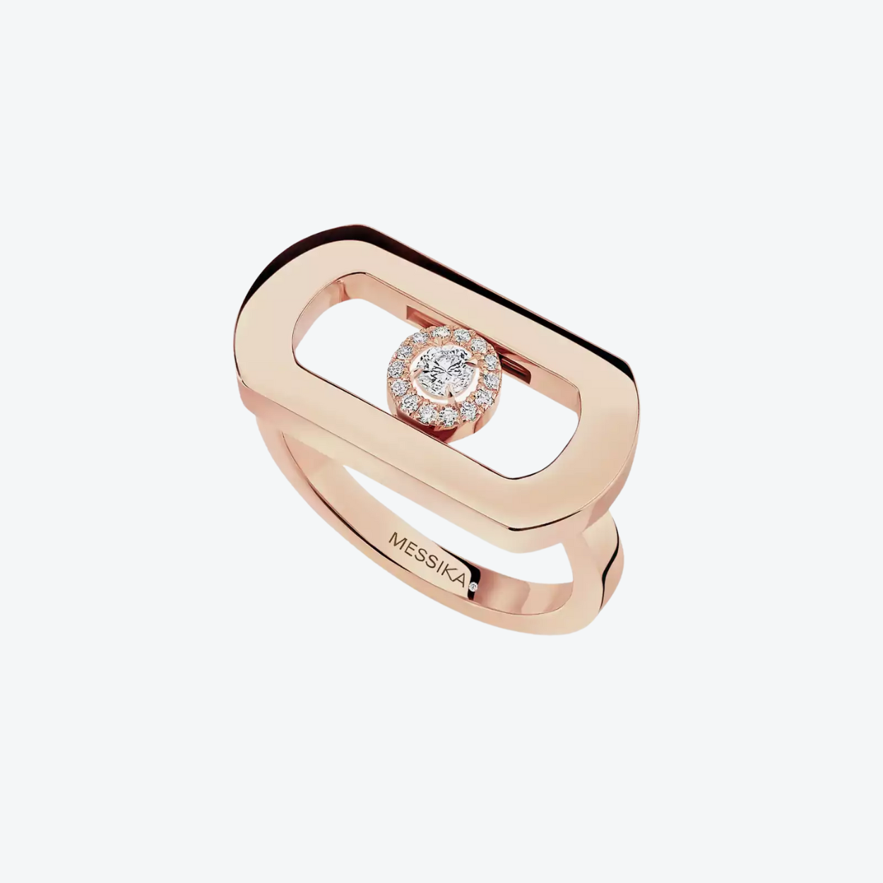 The Messika So Move ring in 18-karat rose gold is a sculptural statement that exudes both strength and whisper-soft luxury. The iconic XXL Move motif, complete with the free-flowing brilliant, forms a harmonious powerhouse within a delicate pavé frame. The polished gold surfaces subtly reflect the light, making this ring a modern classic: unmistakably graphic, timeless, yet perfectly balanced — quietly striking at the same time.