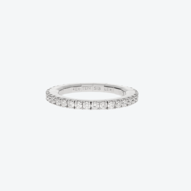 De Roberto Demeglio Extensible Tennis ring witgoud witte diamant FTE65DB.M is een toonbeeld van elegantie en innovatie. Deze verfijnde ring is vervaardigd uit 18 karaat witgoud en bezet met sprankelende witte diamanten die bij elke beweging schitteren. Dankzij de gepatenteerde Extensible-technologie is de ring elastisch, waardoor hij zich soepel aan de vinger aanpast en uitzonderlijk draagcomfort biedt. Een modern meesterwerk waarin Italiaanse verfijning en tijdloze schoonheid samenkomen.