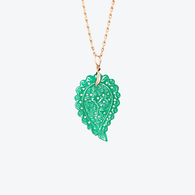 Tamara Comolli's medium India pendant exudes the warmth of craftsmanship and natural elegance. Set in 18kt rose gold, a 12ct hand-carved jade is set in the signature leaf shape, symbolizing harmony and tranquility. The pendant measures 4cm long, including the eyelet, and comes with a leather cord (necklace sold separately). A captivating piece that adds a touch of exotic refinement and can be worn effortlessly solo or layered.