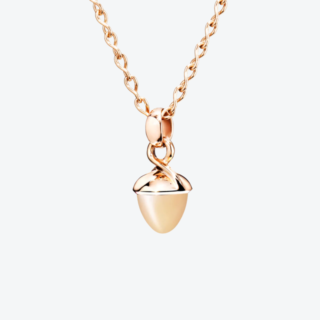 The Tamara Comolli Mikado Bouquet pendant is an understated poetry of light and form. Crafted in polished 18k rose gold, an 8ct cabochon-cut Sand Moonstone sparkles in the iconic acorn shape. Measuring 2.6cm in total length and featuring a 10mm acorn by 11mm in width, this pendant subtly shimmers with every movement. It comes on a soft leather cord (necklace sold separately), allowing it to radiate a serene presence both solo and layered—a timeless expression of refined simplicity.