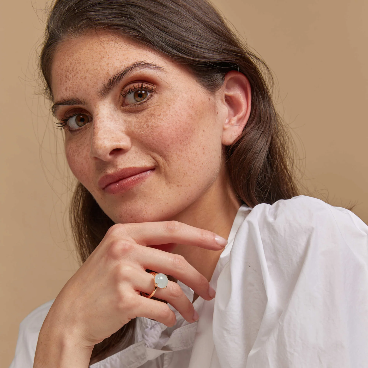 De Bron Catch ring 8RR4783AQC is een verfijnde creatie uit de moderne Catch-collectie. Uitgevoerd in 18 karaat roségoud en gezet met een aquamarijn, straalt deze ring frisheid en elegantie uit. De zachte, lichtblauwe tint van de edelsteen contrasteert prachtig met de warme gloed van het goud en geeft het ontwerp een luchtig, tijdloos karakter. Een sieraad dat subtiele luxe toevoegt aan elke look.