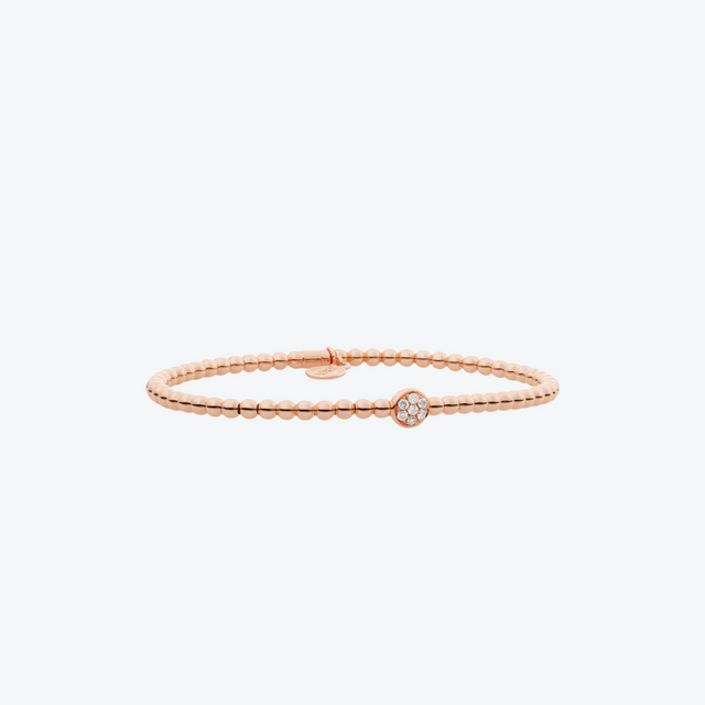 De Bron Reflex armband 7AR3956BR is een elegante creatie uit de minimalistische Reflex-collectie. Deze armband is uitgevoerd in 18 karaat roségoud en verfijnd met briljant geslepen diamanten die een subtiele fonkeling toevoegen aan het ingetogen ontwerp. Het strakke lijnenspel maakt de armband ideaal om solo te dragen voor een tijdloze uitstraling, maar ook perfect te combineren met andere Reflex-sieraden. Een luxueus juweel dat eenvoud en sprankeling harmonieus samenbrengt.