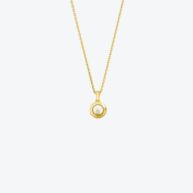 De Chopard Happy Diamonds Icons collier is een subtiel eerbetoon aan licht en beweging. Uitgevoerd in 18 karaat ethisch geelgoud, herbergt hij een vrij dansende diamant tussen twee saffierkristallen, die glanst bij iedere beweging. De fijn uitgewerkte ringvorm en delicate ketting van 42 cm zorgen dat de hanger dicht op de huid valt en straalt zonder opdringerig te zijn. Een elegant juweel dat speelsheid en finesse combineert in een tijdloze vorm.