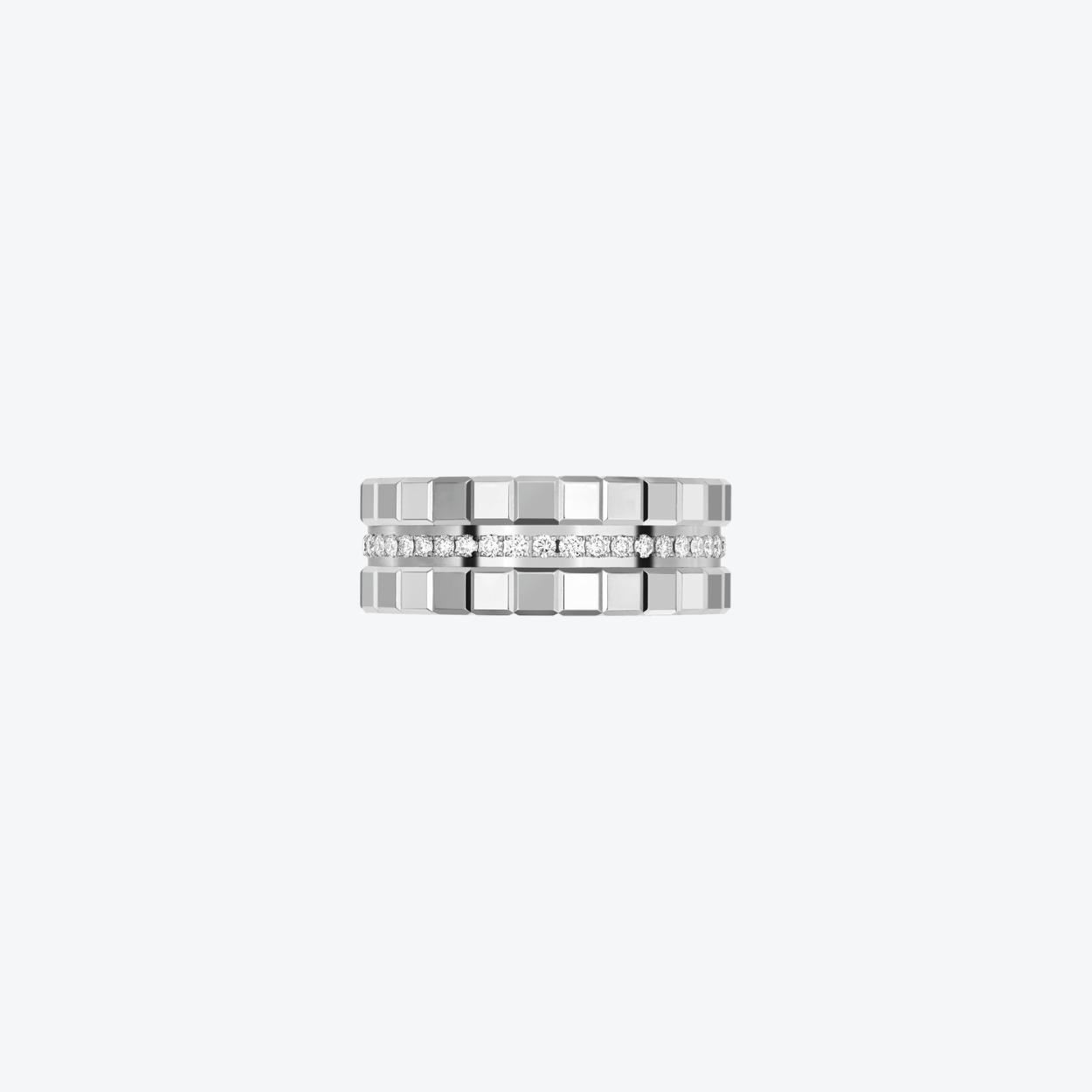 Deze Ice Cube ring straalt puur & modern design. Gemaakt in 18 karaat witgoud en bezet met diamanten rond de kubusvormige facetten, vangt hij het licht op subtiele wijze. Het minimalistische silhouet benadrukt geometrie en elegantie, waardoor hij een perfecte keuze is voor wie houdt van tijdloze luxe met karakter.