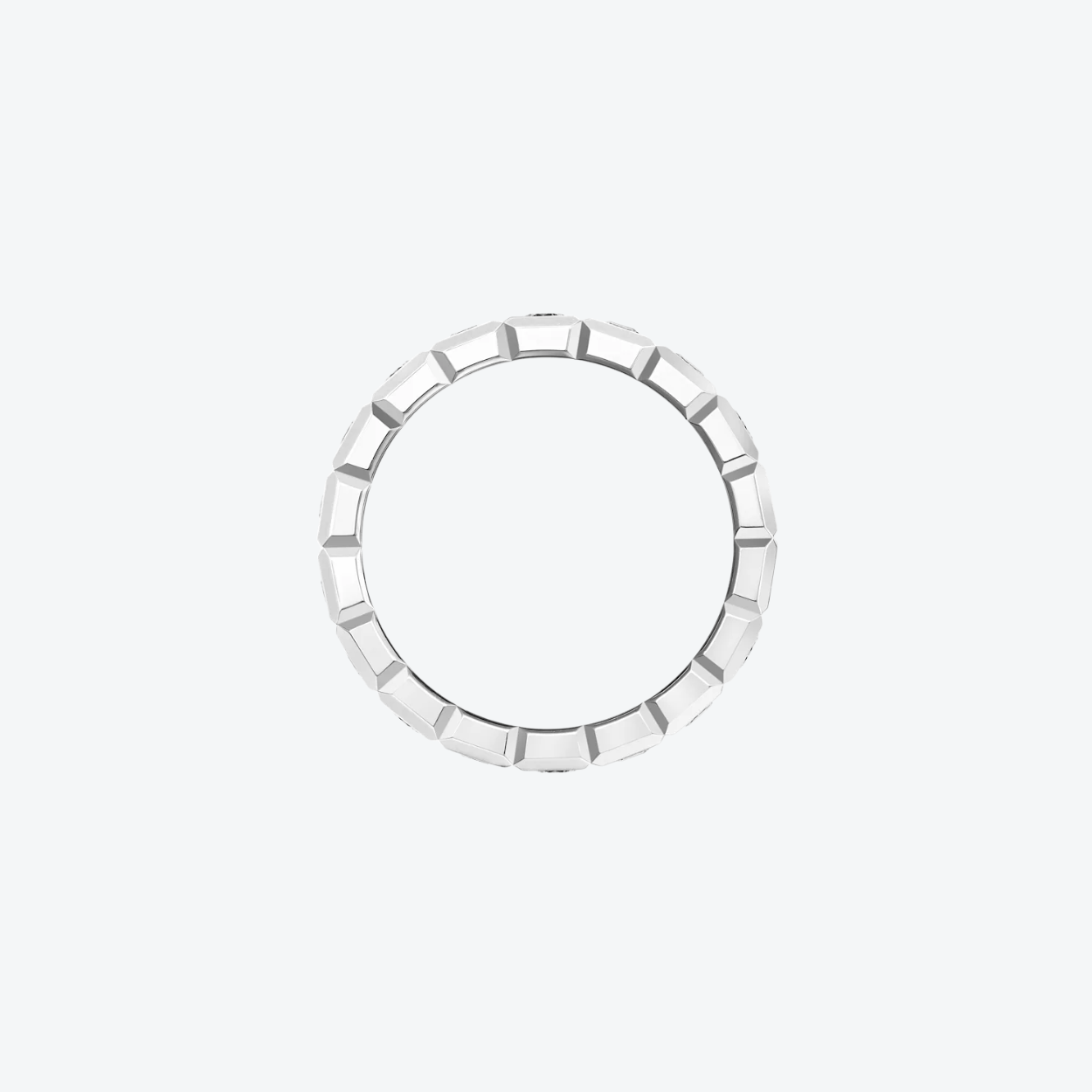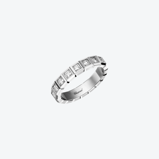 Deze Chopard Ice Cube ring straalt moderne verfijning in haar zuiverste vorm. Uitgevoerd in 18 karaat witgoud, is de ring bezet met diamanten in een precisie-zetting. De kubusvormige facetten vangen het licht subtiel op, terwijl het minimalistische profiel zorgt voor een tijdloze uitstraling. Een ring die elegant past bij zowel minimalistische als luxueuze stijlen.