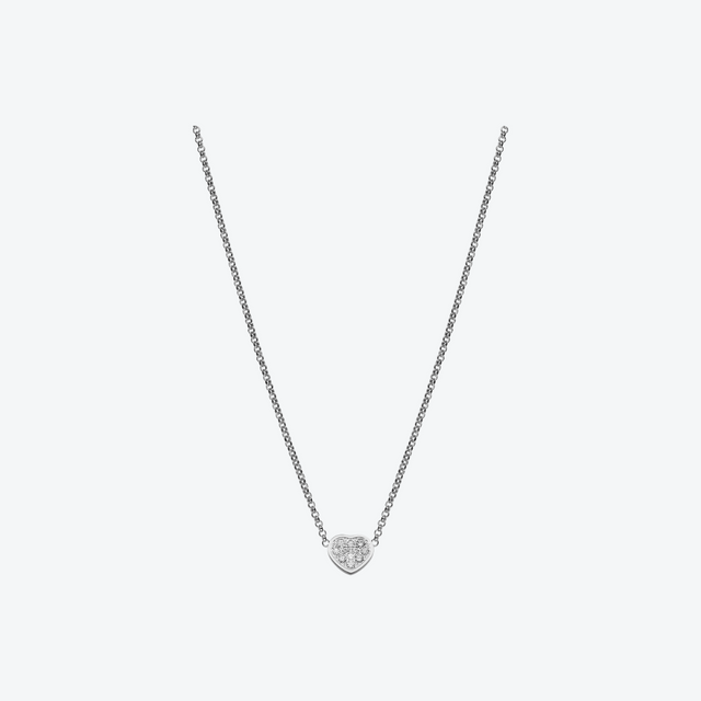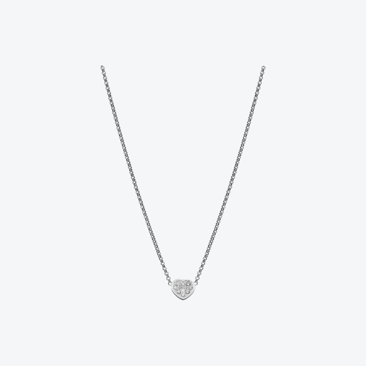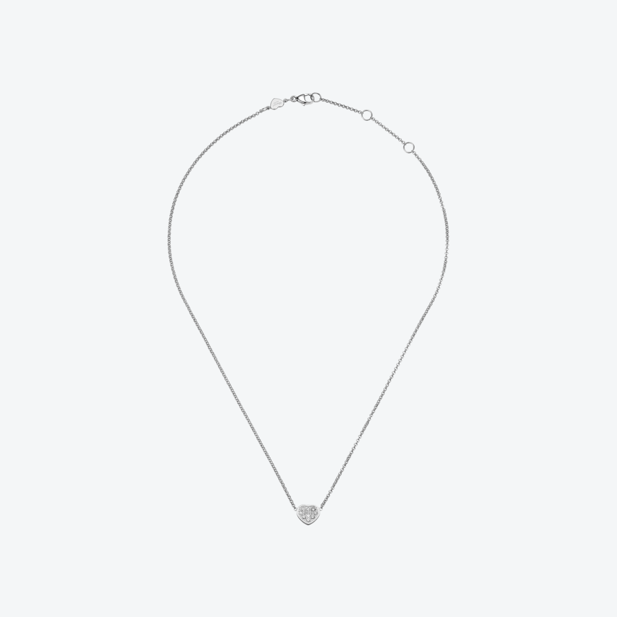 Het My Happy Hearts collier is een sierlijke vertolking van Chopard’s iconische hart- en diamantcodes. In dit model vangt een subtiel hartmotief een dansende diamant in 18 karaat ethisch witgoud, waardoor bij elke beweging een zachte schittering ontstaat. Het collier leent zich elegant voor zowel minimalistische dagelijkse looks als voor een verfijnde finesse bij bijzondere gelegenheden.
