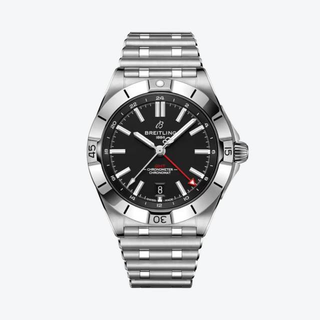 Ontdek de Breitling Chronomat Automatic GMT 40mm bij House of Pertijs. Dit horloge biedt de perfecte balans tussen robuustheid en verfijning, met een elegante stalen kast en een opvallende zwarte wijzerplaat. De rode GMT-wijzer springt in het oog en maakt de dubbele tijdzone functionaliteit extra duidelijk. Aangedreven door het betrouwbare Breitling Caliber 32, is dit horloge ideaal voor wereldreizigers. Met 200 meter waterbestendigheid en een tijdloos design is de Chronomat GMT 40mm een must-have voor elke gelegenheid.