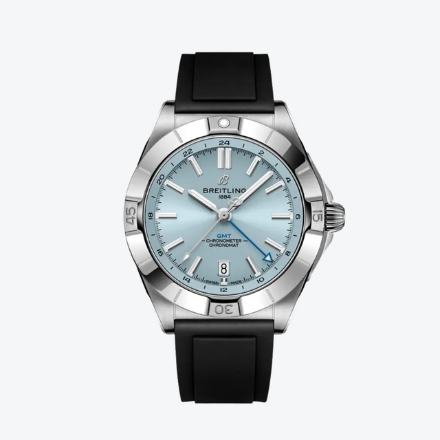 De Breitling Chronomat Automatic GMT 40mm is een meesterwerk van stijl en functionaliteit. Het horloge combineert een robuuste stalen horlogekast met een zwart rubberen band, terwijl de ijsblauwe wijzerplaat een frisse en levendige uitstraling biedt. Aangedreven door het Breitling Caliber 32, maakt het horloge het eenvoudig om een tweede tijdzone bij te houden met de 24-uurs schaal. Dankzij de 200 meter waterbestendigheid is het geschikt voor zowel avontuurlijke uitjes als formele gelegenheden. Het perfecte horloge voor wie overal naartoe reist, met een verfijnde balans tussen prestaties en stijl.