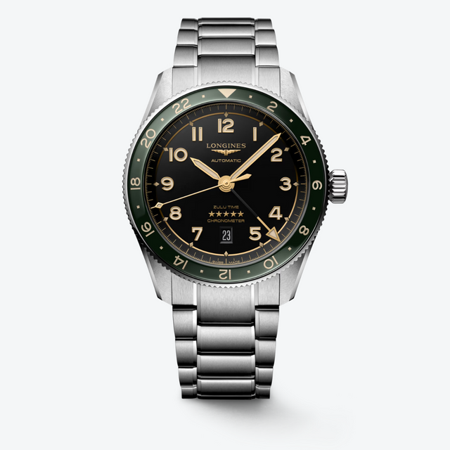 Een subtiel eerbetoon aan het pionierschap in wereldtijd; deze Spirit Zulu Time combineert functionaliteit met verfijning in een 42 mm ronde stalen kast met ceramische bidirectionele ring. De anthracite wijzerplaat met goudkleurige gepolijste Arabische cijfers en wijzers, met Swiss Super‑LumiNova®, laat een extra 24‑uurs GMT‑wijzer en een datumweergave op zes uur spreken van wereldwijde avonturen. Het COSC-gecertificeerde automatische cal. L844.4 met siliconen balansveer biedt ca. 72 uur gangreserve en is magnetisch resistent. Een dubbele veiligheid‑vouwsluiting op de stalen band, een geschroefde kroon, saffierglas met AR-coating en 10 bar (100 m) waterdichtheid maken dit horloge tot een elegant en betrouwbaar instrument met vijfjarige garantie.