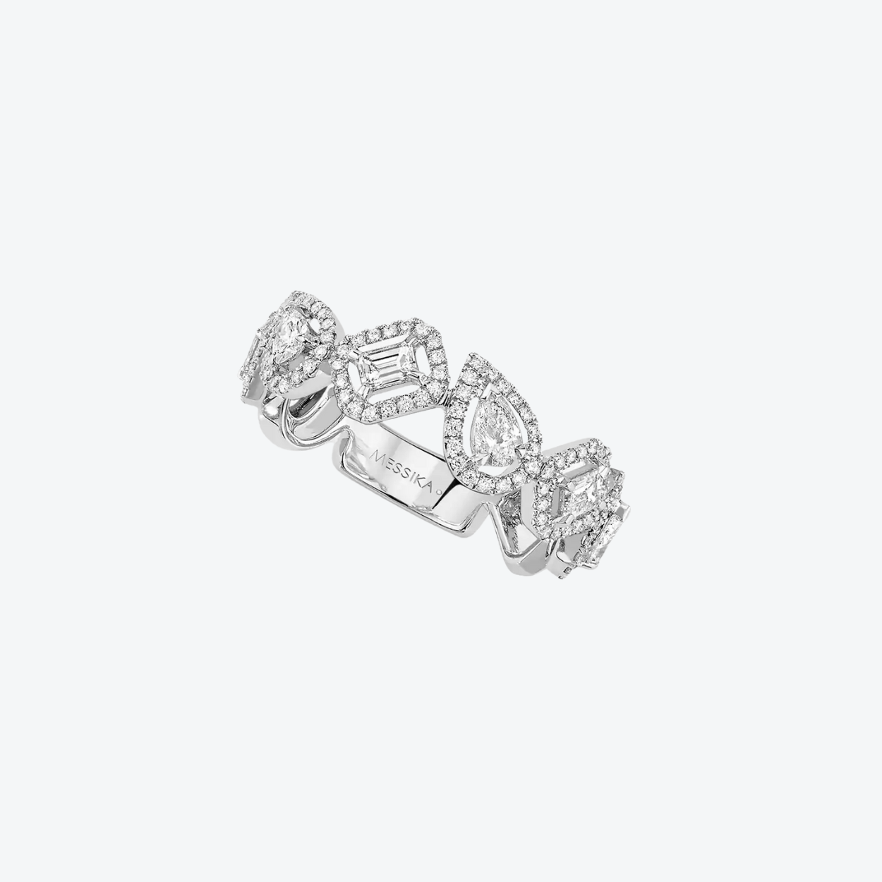 De Messika My Twin wedding ring in 18-karaats witgoud is een iconische ode aan delen: vier elegant geslepen emerald geslepen diamanten en vier sprankelende peer geslepen diamanten wisselen elkaar af in een speels tête-à-tête. Omspannen door de zachte glans van witgoud. De subtiele micro-pavétag aan de binnenkant fungeert als een discreet signatuur. Dit sieraad combineert vintage romantiek met moderne grafische finesse—een belofte van stijl en verbondenheid, tijdloos en verfijnd.