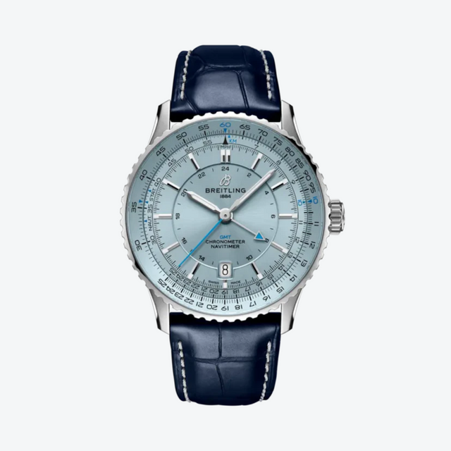 De Breitling Navitimer Automatic GMT 41mm is een iconisch horloge voor de moderne reiziger. Met zijn 41mm roestvrijstalen kast en lichtblauwe wijzerplaat biedt het zowel stijl als functionaliteit. De GMT-functie maakt het ideaal voor het volgen van twee tijdzones tegelijkertijd, perfect voor wereldreizigers. Het automatische uurwerk van Breitling garandeert precisie en betrouwbaarheid, terwijl het verfijnde ontwerp het horloge tot een echt statement maakt. Ontdek de Navitimer Automatic GMT 41mm bij House of Pertijs