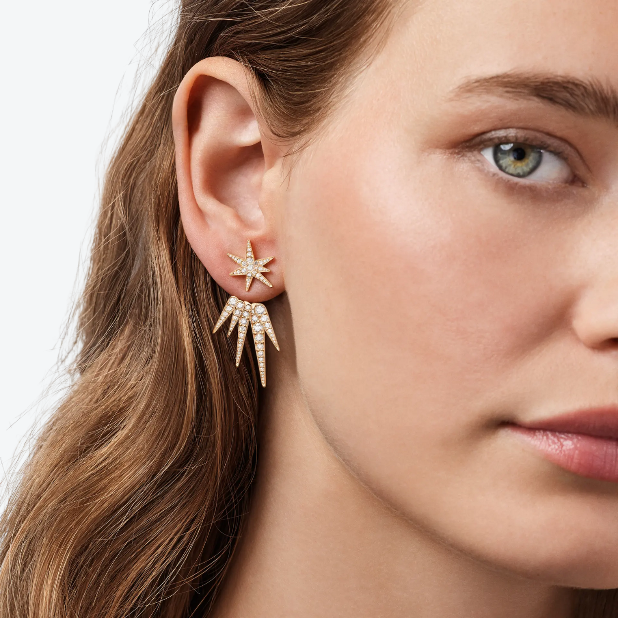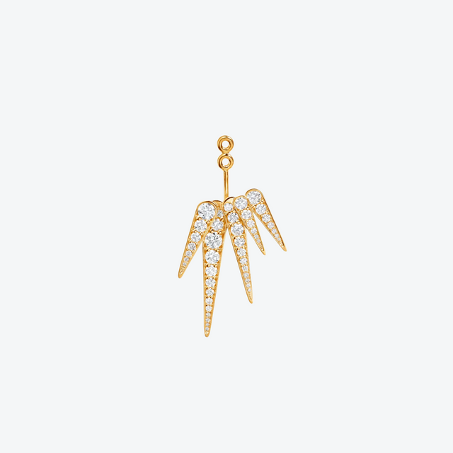 De Ole Lynggaard Funky Stars aanhanger A3099-401 is een gedurfd statement waarin sterrenkracht en verfijndheid samensmelten. Uitgevoerd in 18 karaat geelgoud en bezet met 44 briljant geslepen diamanten met een totaalgewicht van 0.61 ct, straalt dit juweel modern design en sprankelende allure uit. Dankzij het gelaagde design en de subtiele diepte is deze pendant ideaal te combineren met een oorknop of als los accent in een elegante oorstyling. Een opvallend detail met karakter en elegantie.