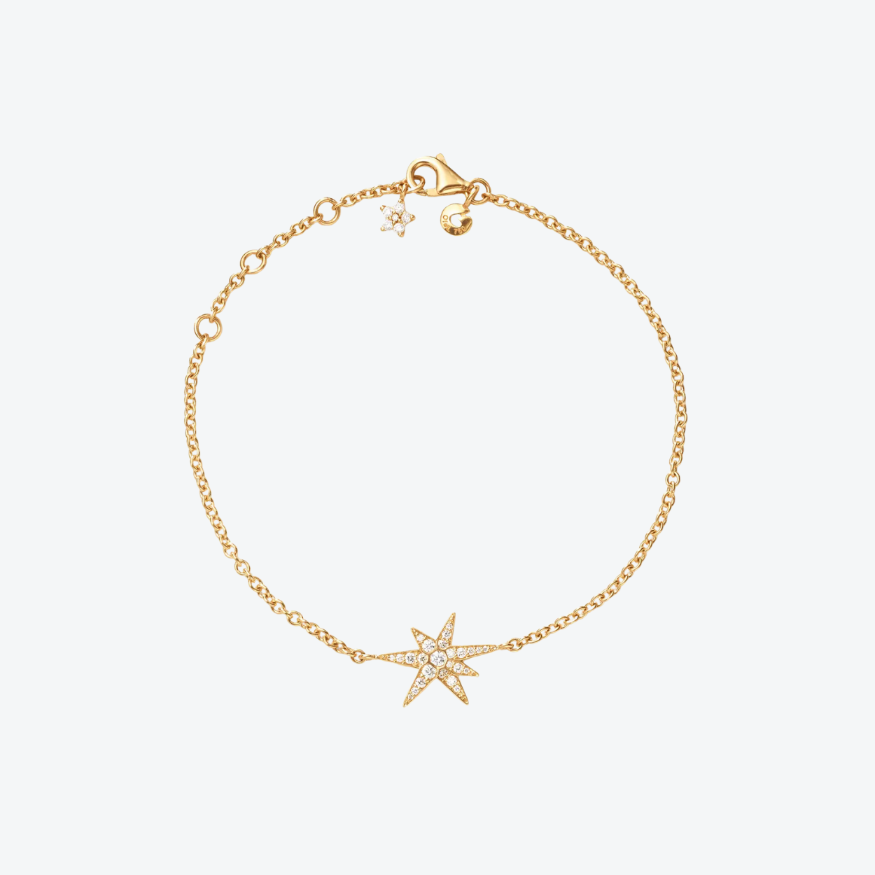De Ole Lynggaard Funky Stars armband A3203-401 is een sprankelend sieraad dat kracht en finesse samenbrengt. Vervaardigd uit 18 karaat geelgoud en bezet met 31 briljant geslepen diamanten met een totaalgewicht van 0.15 ct (TW/VS), heeft deze armband een verfijnd maar expressief karakter. Met verstelbare lengte-opties (17, 16 en 15 cm) past hij moeiteloos om verschillende polsdiktes, terwijl het ontwerp met scherpe lijnen en subtiel lichtspel garant staat voor een elegante en opvallende uitstraling.