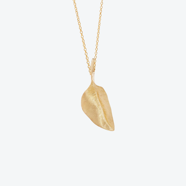De Ole Lynggaard Leaves hanger A3008-403 is een verfijnde mini-interpretatie van de iconische Leaves-lijn, perfect in balans tussen elegantie en natuurlijke expressie. Deze hanger is vervaardigd uit 18 karaat geelgoud, waarbij meester-goudsmeden het blad met de hand modelleren en satinerend afwerken, waardoor een zacht matte textuur ontstaat. Dankzij het subtiele en sierlijke ontwerp past dit hangertje moeiteloos bij dagelijkse én feestelijke looks. Draag het als een ingetogen accent of combineer met andere sieraden voor een gelaagd effect.