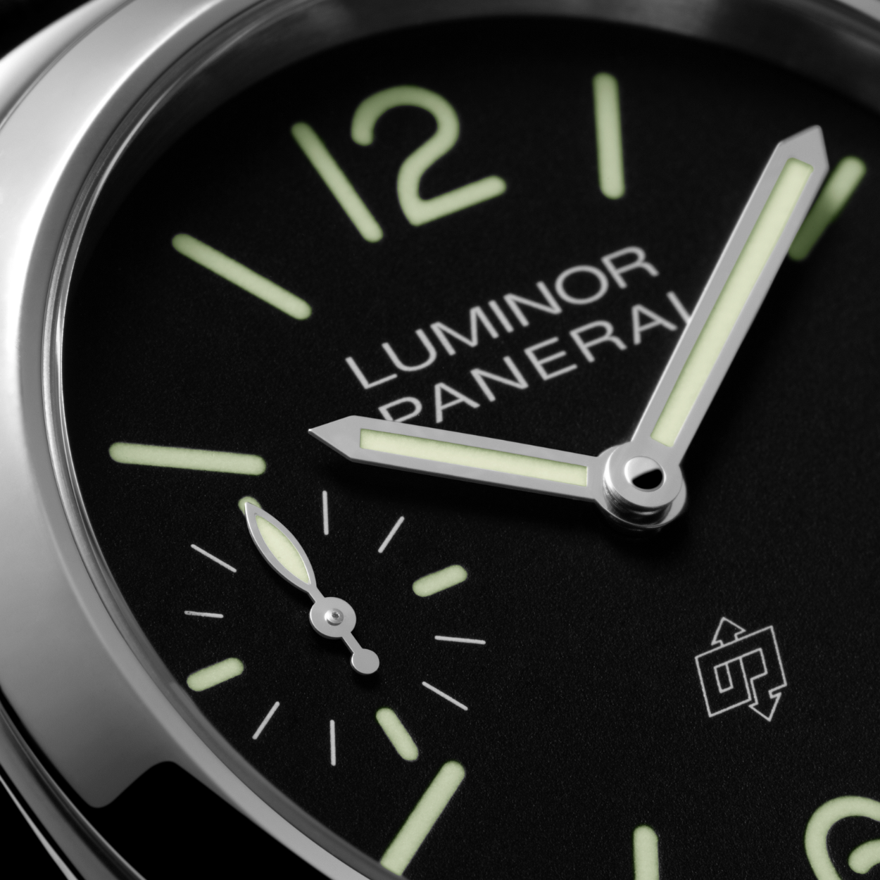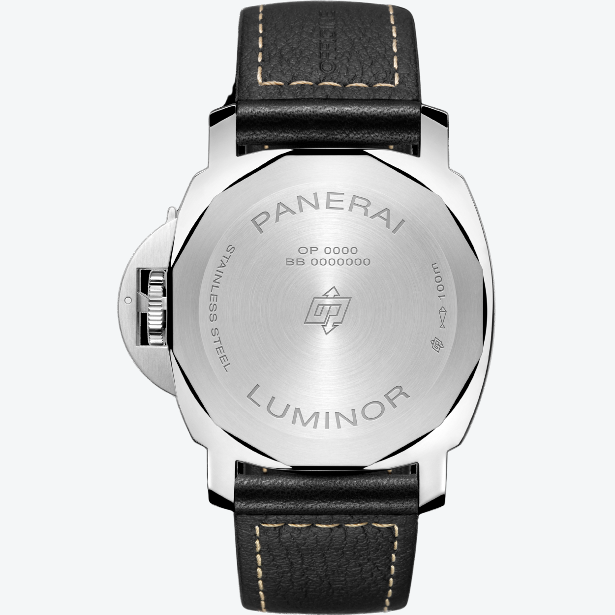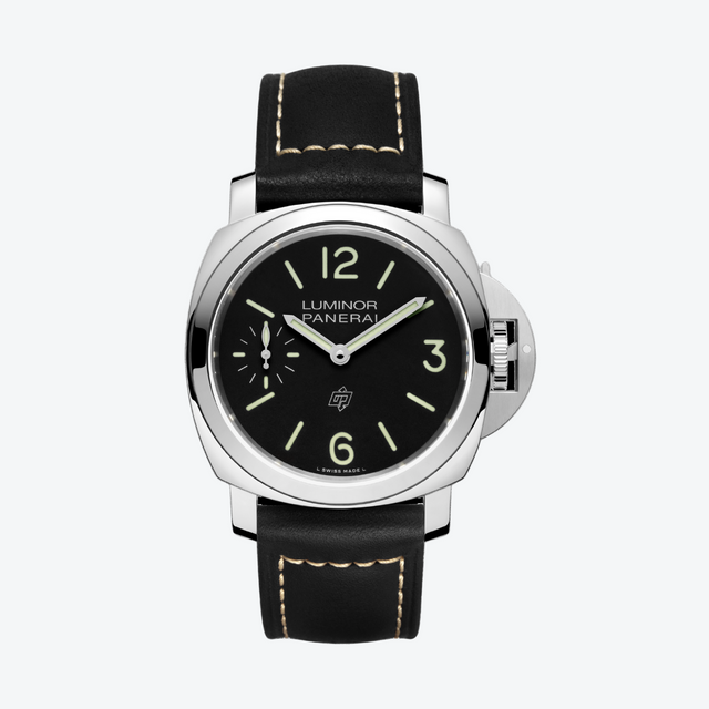 De Panerai Luminor Logo 44 mm – PAM01084 is een direct herkenbaar eerbetoon aan Panerai’s erfgoed, met een puur en functioneel ontwerp. De robuuste 44 mm AISI 316L stalen kast combineert geborstelde zijvlakken met een gepolijste lunette en het iconische kroonbeschermingshek. Op de matte zwarte sandwich-wijzerplaat springen luminieuze Arabische cijfers en indexen in het oog, aangevuld met een kleine seconde op 9 uur. Aangedreven door het handopwindende P.6000 kaliber met een gangreserve van drie dagen en een stop-secondefunctie, is dit horloge zowel praktisch als elegant. De zwarte Ponte Vecchio kalfsleren band met beige stiksel en trapezium gesp biedt comfort en stijl. Met een waterdichtheid van 10 bar (100 m) is dit model een veelzijdige klassieker die dagelijks draagplezier biedt.