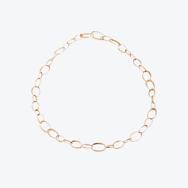 Het Pomellato Gold collier (PCA7010_O7000_00000) is volledig vervaardigd uit 18 karaat roségoud en belichaamt de tijdloze elegantie van Pomellato. De schakelketting heeft een vloeiende vorm en een glad gepolijste afwerking die de warme gloed van roségoud prachtig laat uitkomen. Afgewerkt met een stevige karabijnsluiting is dit collier zowel solo te dragen als in combinatie met andere sieraden. Een veelzijdig juweel dat moeiteloos stijl en luxe uitstraalt.