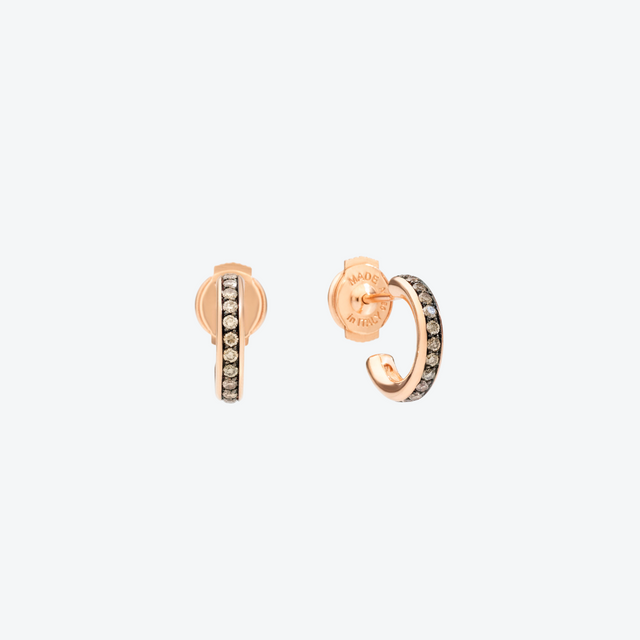 De Pomellato Iconica oorbellen POB8110_O7000_DBR00 zijn uitgevoerd in 18 karaat roségoud, subtiel aangezet met fonkelende briljanr geslepen diamant. De Iconica stijl combineert krachtige eenvoud met luxe details: de oorbellen hebben een stevige structuur, maar blijven elegant en tijdloos — perfect voor zowel dagelijks gebruik als speciale gelegenheden. De afwerking is hoogglans, met een scharnierende of “hinge” sluiting voor comfort en stabiliteit. Deze Iconica oorbellen zijn een statement van stijl en verfijning.
