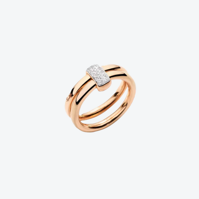 De Pomellato Together ring PAC4012_O7WHR_DB000 is vervaardigd uit 18 karaat roségoud, met een accent in witgerhodineerd roségoud op de link-schakel. De ring is bezet met 15 witte briljant geslepen diamanten, met een gecombineerd gewicht van 0,10ct. De afwerking is hoogglans roségoud, met een subtiele elegantie die past bij zowel dagelijks gebruik als speciale gelegenheden. Het design – twee ovalen verbonden door een schakel – symboliseert verbinding en partnerschap, een zachte maar betekenisvolle statement.