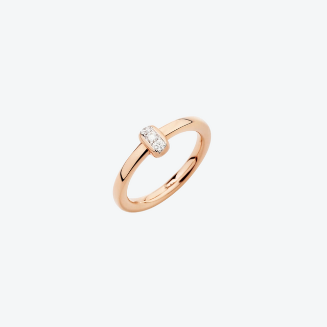 De Pomellato Together ring PAC5013_O7000_DB000 is uitgevoerd in 18 karaat roségoud en bezet met pavé gezette witte diamanten van samen 0,70ct. Het dubbele ringontwerp, kenmerkend voor de Together-lijn, staat symbool voor verbondenheid en harmonie. De briljant geslepen diamanten zorgen voor een fonkelende schittering die prachtig contrasteert met de warme gloed van roségoud. Een modern en betekenisvol juweel dat elegantie en emotie samenbrengt.