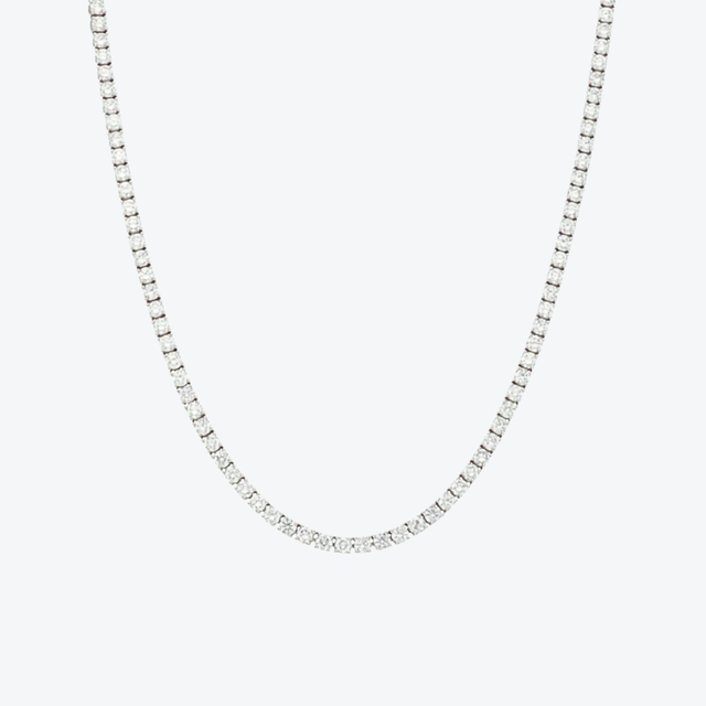 Het Roberto Demeglio Tennis collier witgoud 1,99 ct diamant 00211007 is een tijdloos sieraad waarin eenvoud en verfijning samenkomen. Met de hand vervaardigd uit 18 karaat witgoud en bezet met briljant geslepen diamanten met een totaalgewicht van 1,99 karaat, straalt dit collier pure elegantie uit. De subtiele schittering van elke steen vormt een perfect ritme van licht, waardoor het collier moeiteloos gedragen kan worden bij elke gelegenheid. Een iconisch juweel dat de essentie van Italiaanse luxe weerspiegelt.