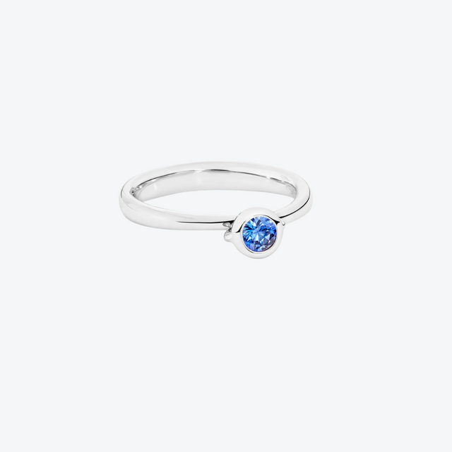 De Bouton ring Solitaire Saffier is een krachtige uiting van tijdloze elegantie. In 18karaat witgoud schittert een briljant geslepen saffier van 0.30ct met een diameter van 8 mm, bekroond door een verfijnde bezelzetting. Dit juweel combineert de levendige diepte van de saffier met ingetogen vakmanschap. Een prachtig statement solo gedragen of stijlvol verwerkt in een elegante Bouton-stack.