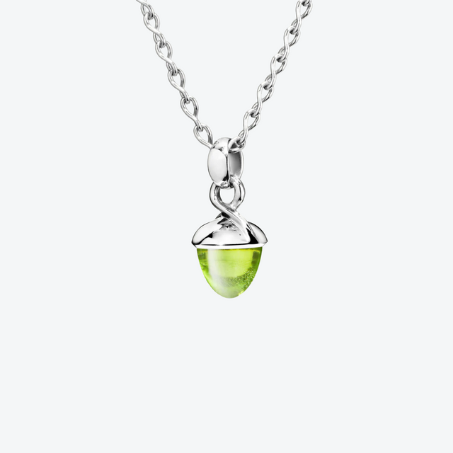 De Mikado hanger Peridot (ref. P‑MB‑f‑Per‑wg) is een subtiele ode aan kleur met iconische allure. Uitgevoerd in 18 karaat witgoud, vormt een cabochon geslepen Peridot van 10ct (in medium acorn‑vorm) het hart van dit sieraad. Met zijn compacte afmetingen — 2,6 cm lengte, 10 mm acorn‑lengte en 11 mm diameter — is het een verfijnde en veelzijdige aanwinst. Ideaal voor solo-draal of als deel van een expressieve layer‑look.