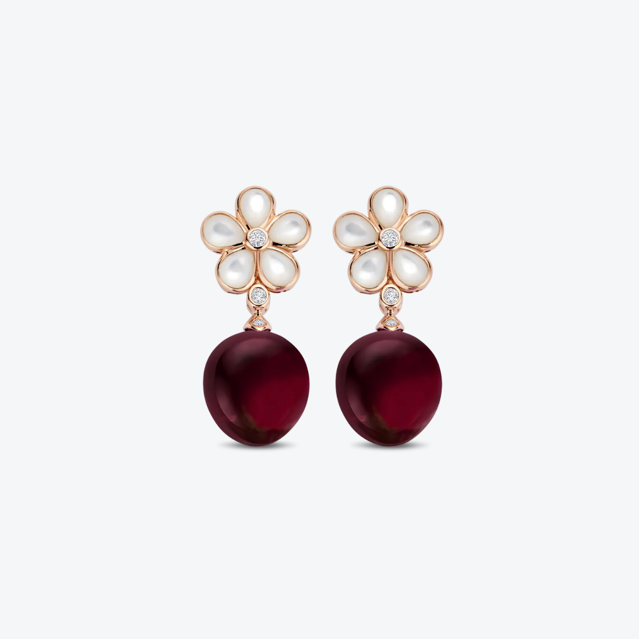 De Tirisi Fiji oorbellen TE7176WM+RGP zijn een luxe combinatie van natuurlijke materialen en fijn goudwerk. Gemaakt van 18 karaat roségoud, bevatten ze briljant geslepen diamant en rode granaat. Dit paar straalt zachte elegantie uit. Perfect voor wie subtiele luxe zoekt met karakter. De Tirisi Fiji oorbellen zijn een stijlvolle creatie vol allure.
