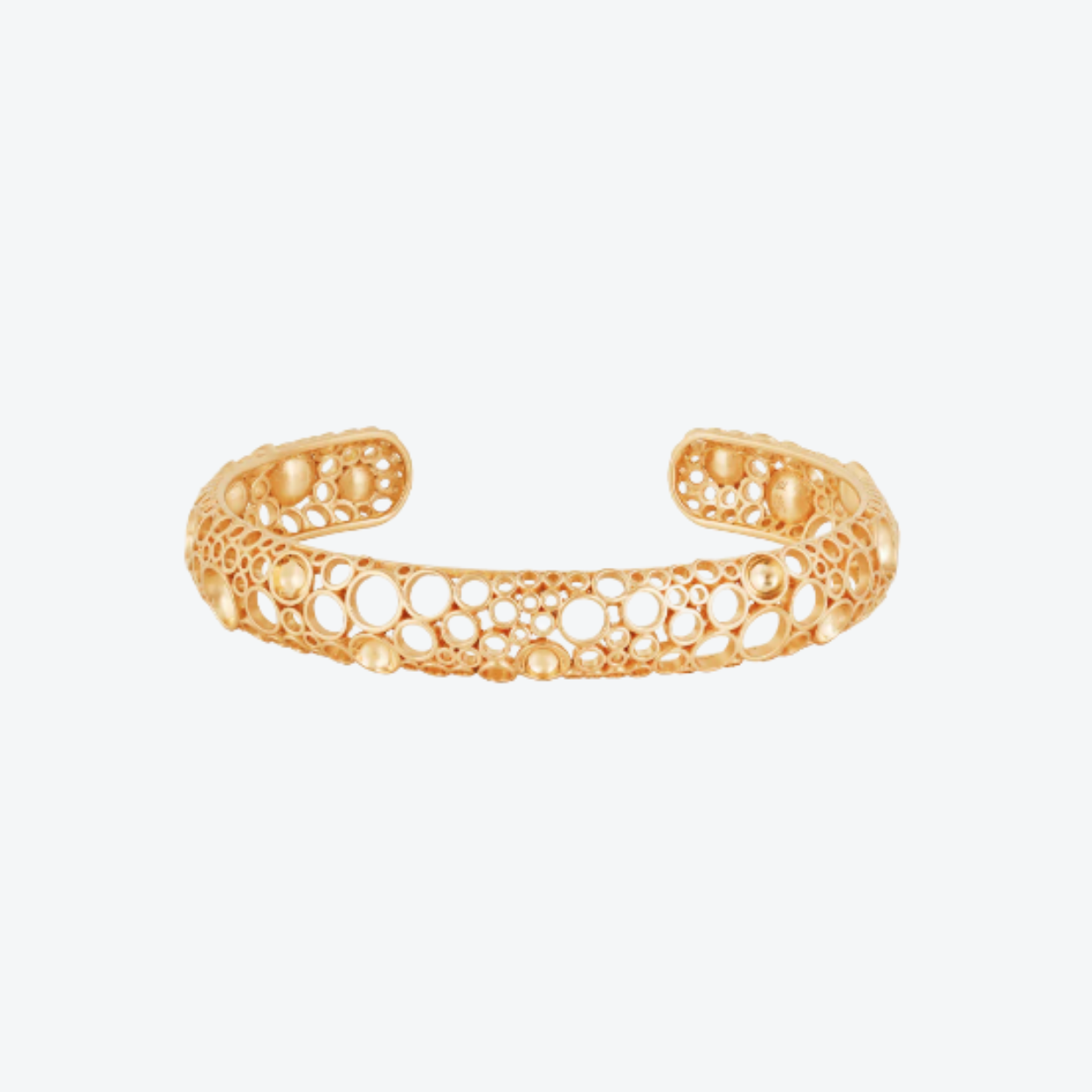 De Van Gelder Jali Celestrial open bangle 15014895 weerspiegelt de betovering van sterrenlicht in goud gevangen. Met de hand vervaardigd uit 18 karaat geelgoud toont deze armband het iconische Jali-patroon, waarin opengewerkte vormen symbool staan voor harmonie, verbinding en eeuwige beweging. De subtiele glans en verfijnde afwerking omarmen de pols met een zachte kracht die zowel modern als spiritueel aanvoelt. Een meesterwerk dat tijdloze elegantie en Indiase ziel verenigt.